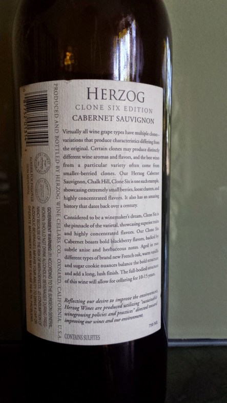 2009 Herzog Cabernet Sauvignon, Clone Six, Chalk Hill – back label