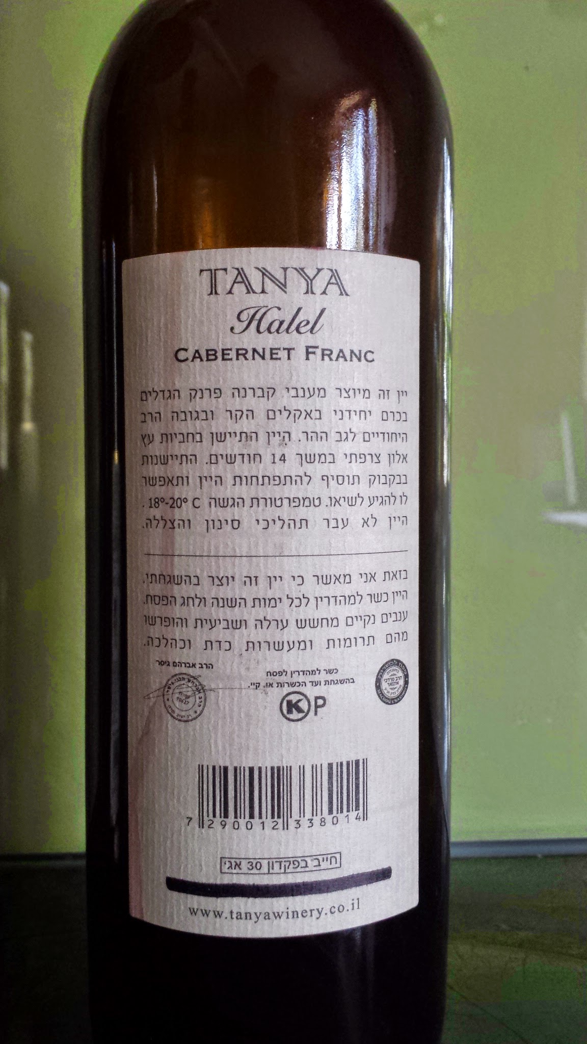 2009 Tanya Cabernet Franc, Halel, Reserve – back label