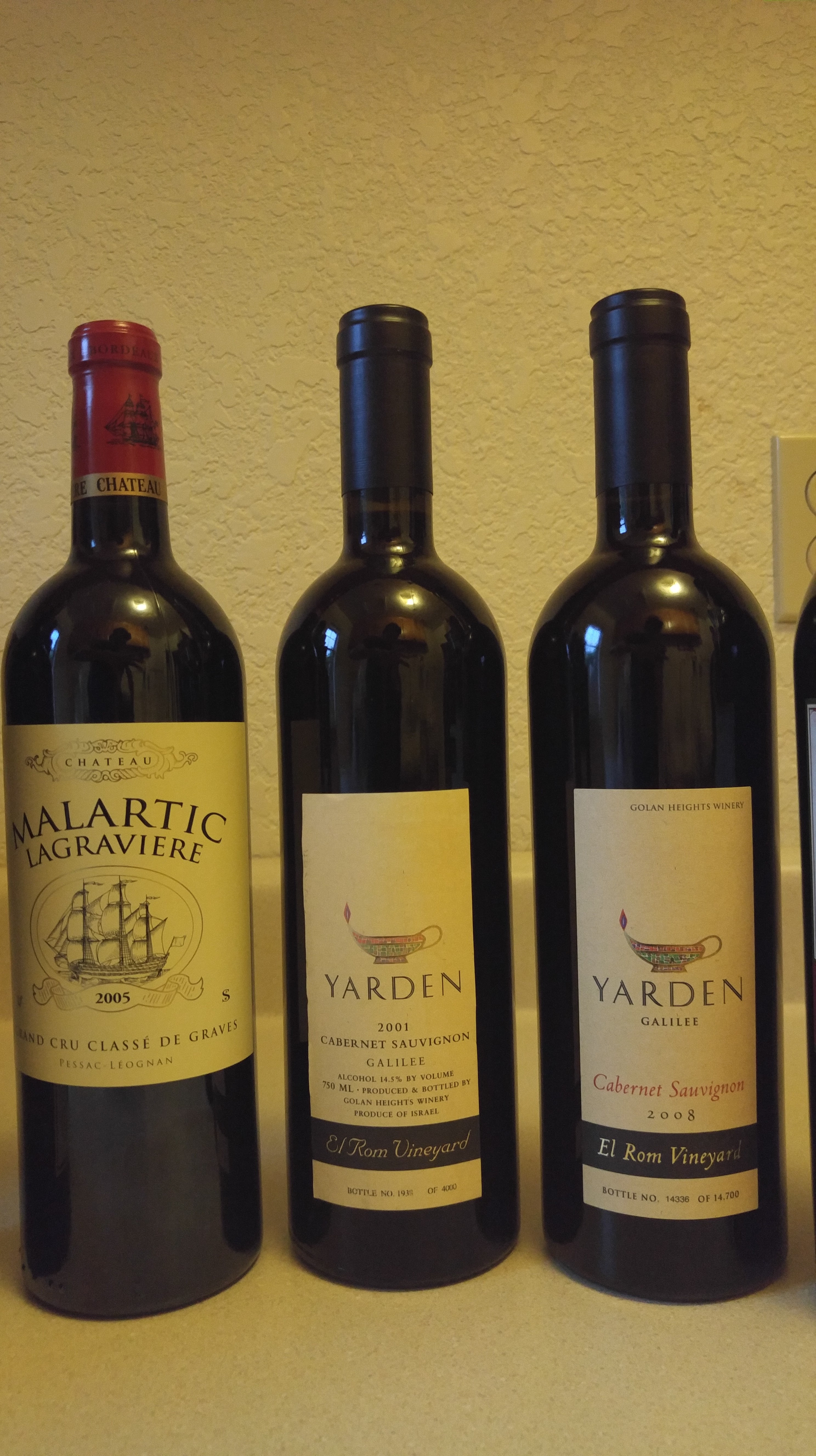 2001 Yarden El Rom, 2008 Yarden El Rom, 2005 Chateau Malartic