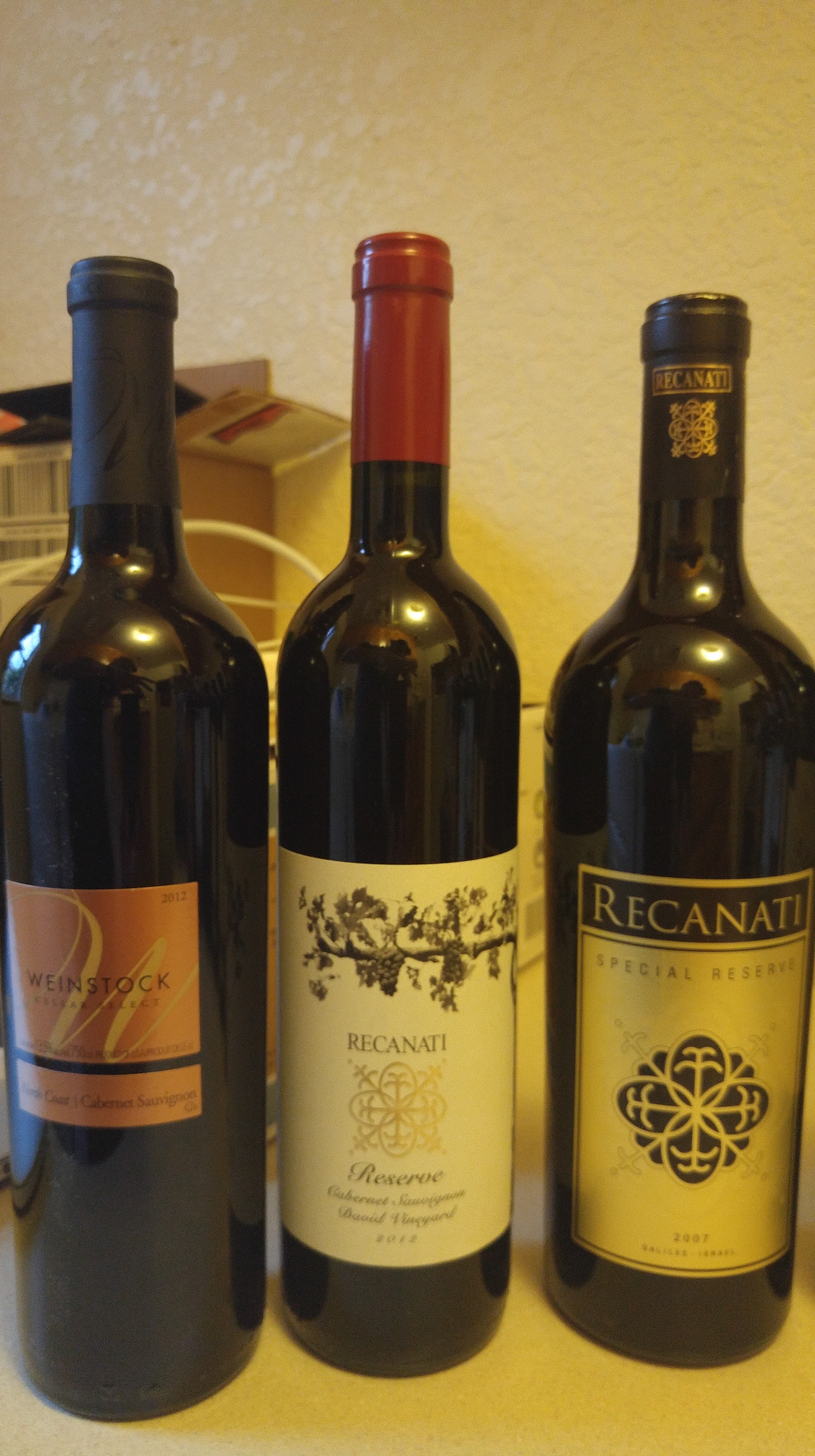 2012 Weinstock Cabernet Sauvignon, 2012 Recanati Cabernet Sauvignon Reserve, 2007 Recanati Special Reserve