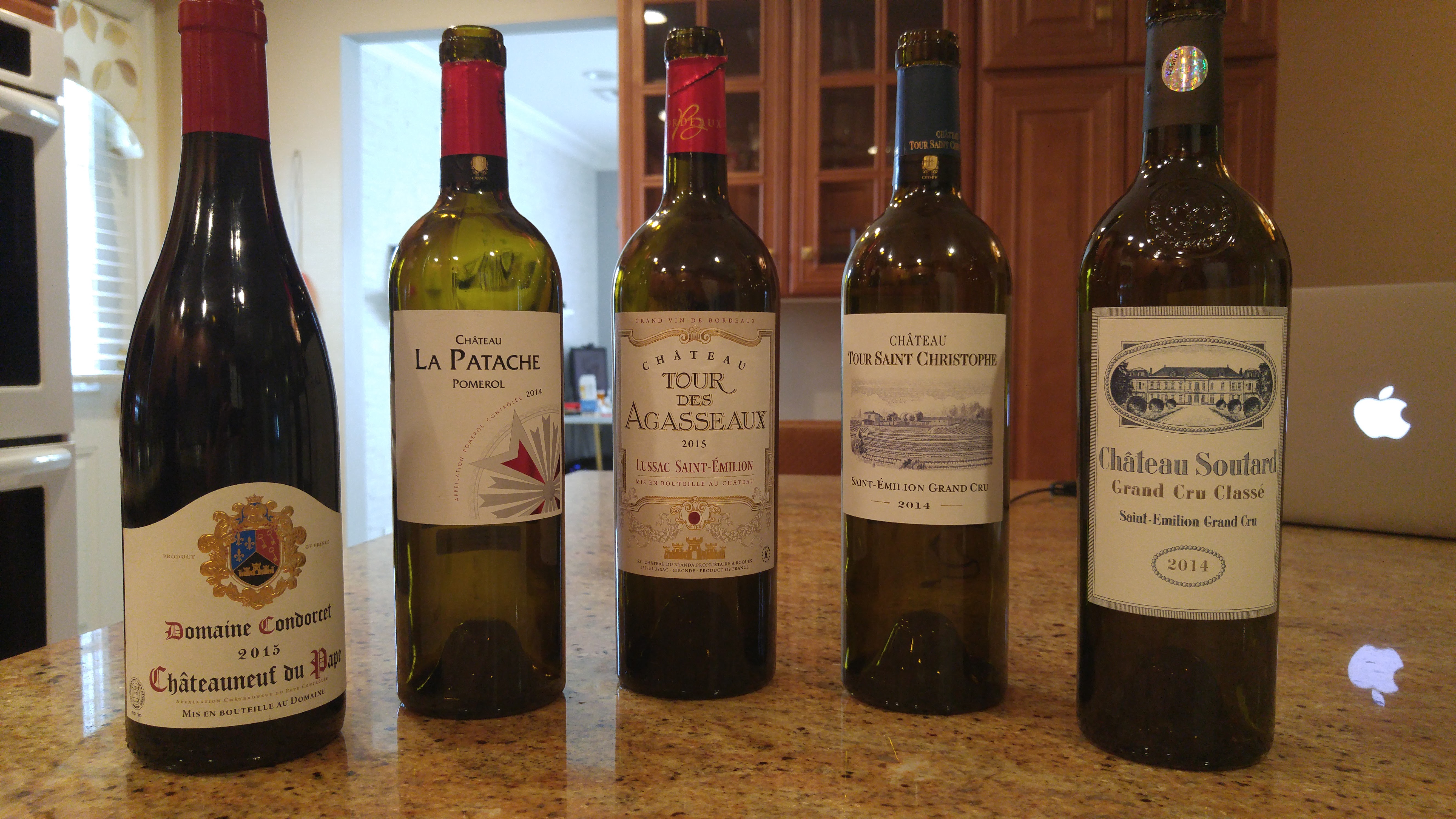 2015 Domaine Condorcet Chateauneuf du Pape, 2014 Chateau La Patache, 2015 Chateau Tour Des Agasseaux, 2014 Chateau Tour Saint Christophe, 2014 Chateau Soutard