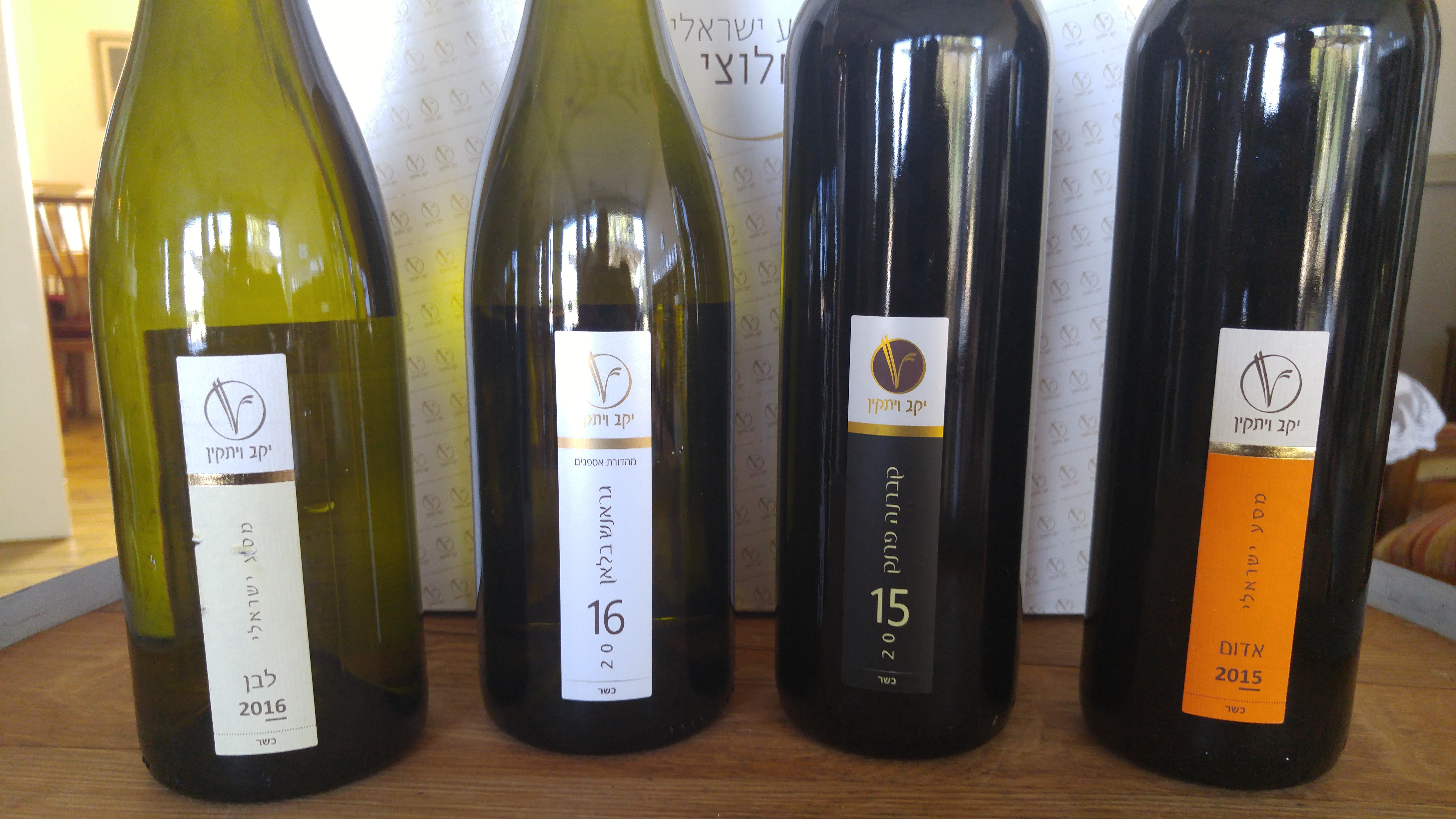 2016 Vitkin Israeli Journey, White, 2016 Vitkin Grenache Blanc, 2015 Vitkin Cabernet Franc, and 2015 Vitkin Israeli Journey, Red
