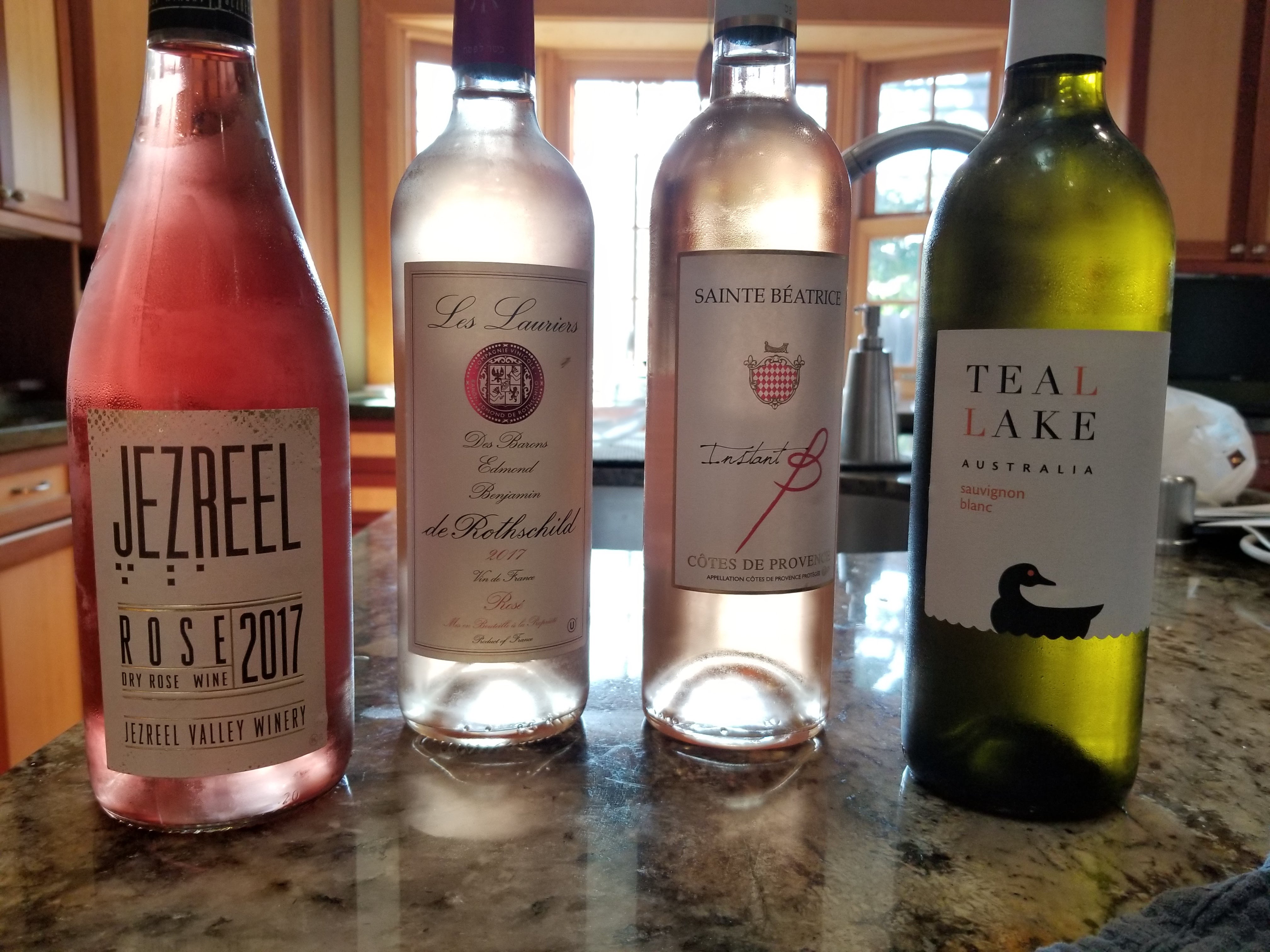 2017 Jezreel Valley Winery Rose, 2017 Barons Edmund et Benjamin de Rothschild La Lauriers Rose, 2016 Sainte Beatrice Instant B