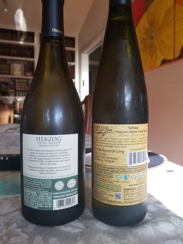 2017 De La Rosa Gruner Veltliner, Taryag and 2016 Herzog Winery Chardonnay, Special Reserve – bl
