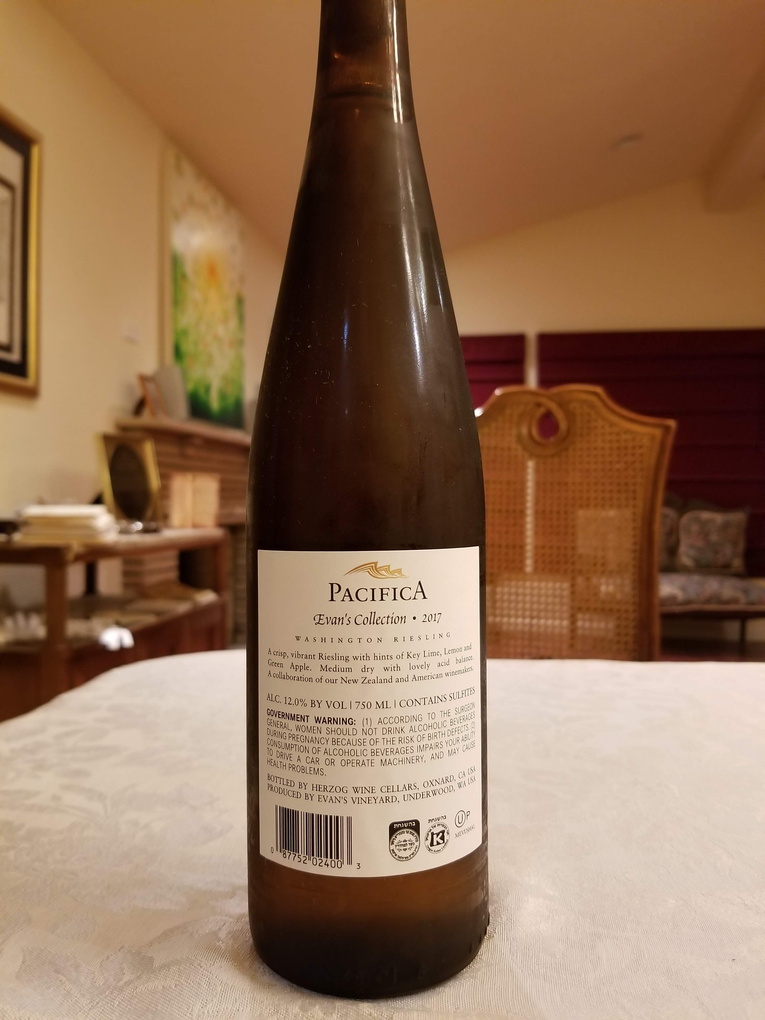 2017 Pacifica Riesling, Evan’s Collection, Washington – bl