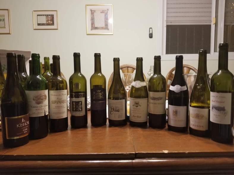 2016 Kishor GSM, 2013 Carmel Merlot Shaal Vineyard, 2016 Capsouto Samuel, 2010 Chateau du Rocher, 2016 Cotes du Rhone, Frederick David, 2012 Cuvee Terroir, La Gravielle Chinon, 2016 Tzor