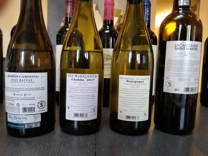 2017 Ramon Cardova Albarino, 2017 Les Marronniers, Chablis, 2017 Bourgogne Les Truffieres, Chardonnay, 2017 Chateau Lacaussade Saint-Martin – bl