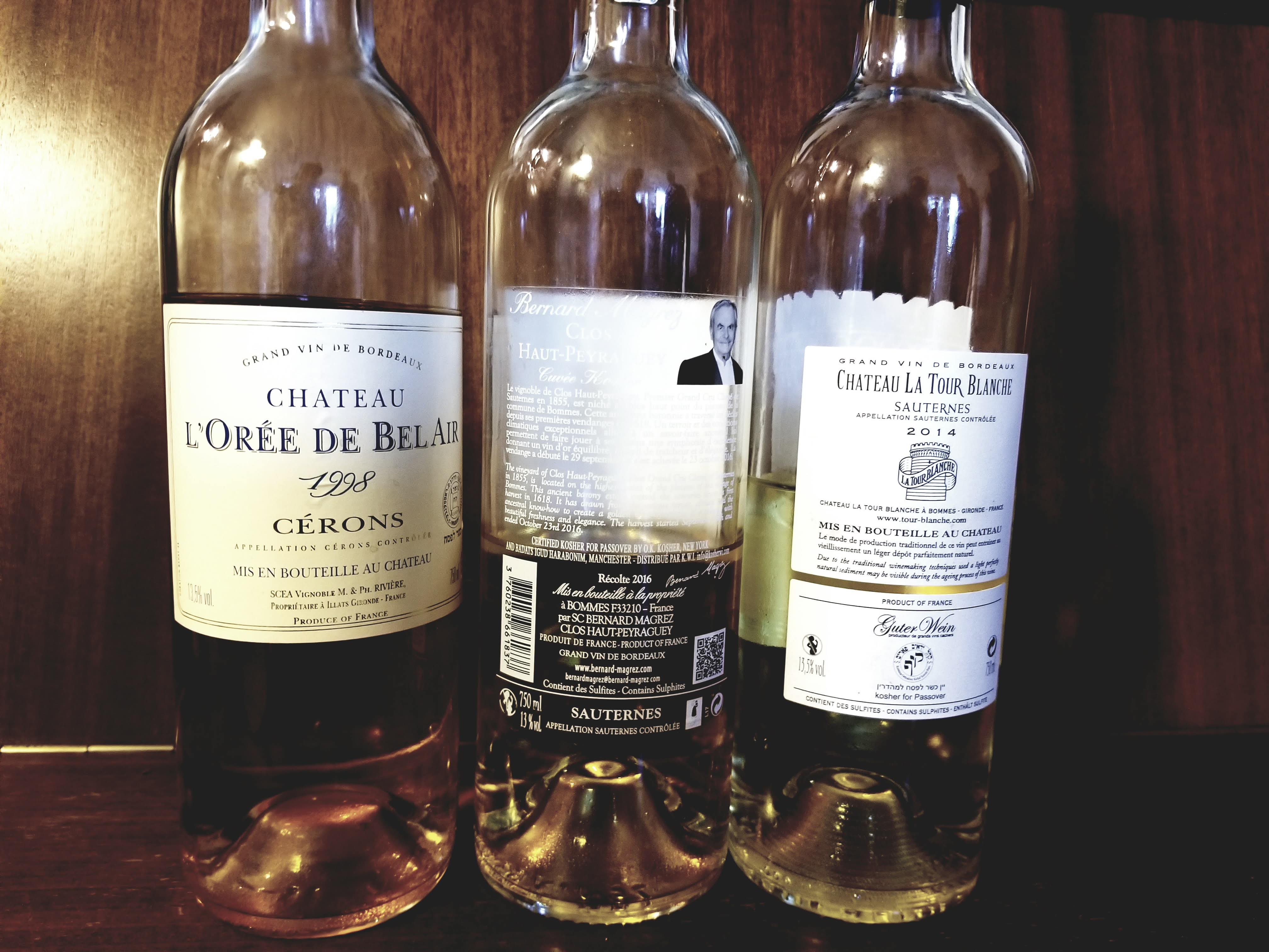 1998 L’Oree de Bel-Air, Cerons, 2016 Clos Haut-Peyraguey, Sauternes, Premier Grand Cru Classe, 2014 Chateau La Tour Blanche Sauternes, 1er Cru classé – bl
