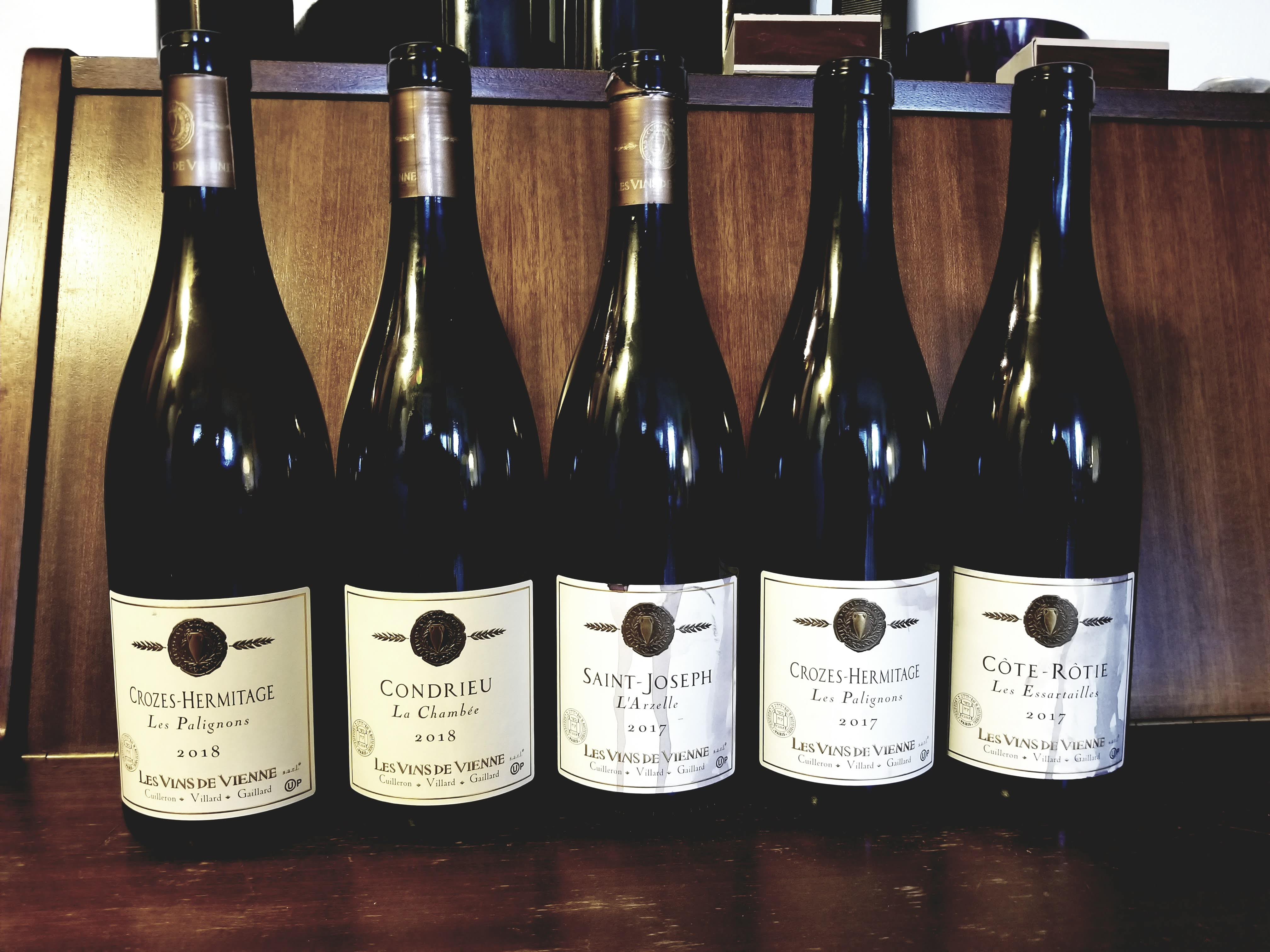 2018 Le Vins de Vienne Crozes-Hermitage, Les Palignons, 2018 Le Vins de Vienne Condrieu, La Chambee, 2017 Saint Joseph, L’Arzelle, 2017 Crozes-Hermitage, Les Palignons, 2017 Cote Rotie, Les Essartailles