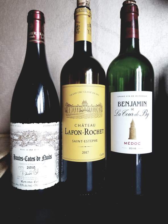 2010 Roberto Cohen Hauts-Cotes de Nuits, 2017 Chateau Lafon-Rochet, Saint-Estephe, Grand Cru Classe, 2016 Benjamin de La Tour de By, Medoc