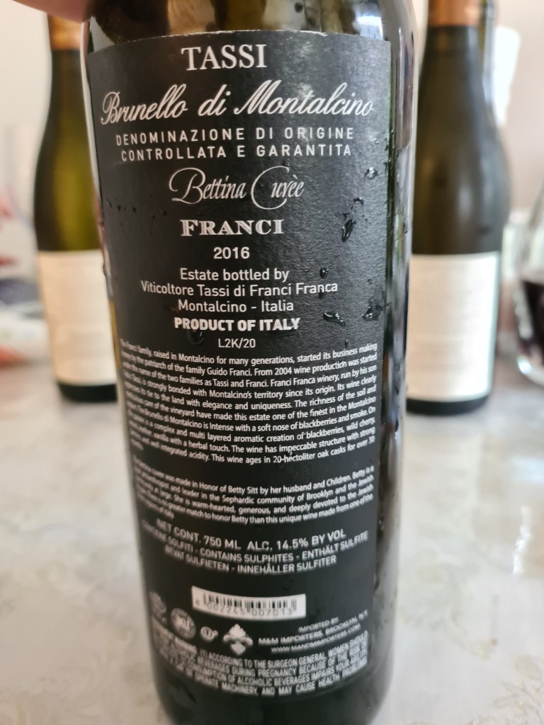 2016 Tassi Brunello di Montalcino, Bettina Cuvee, Brunello di Montalcino – Score: 92+ (QPR: BAD)