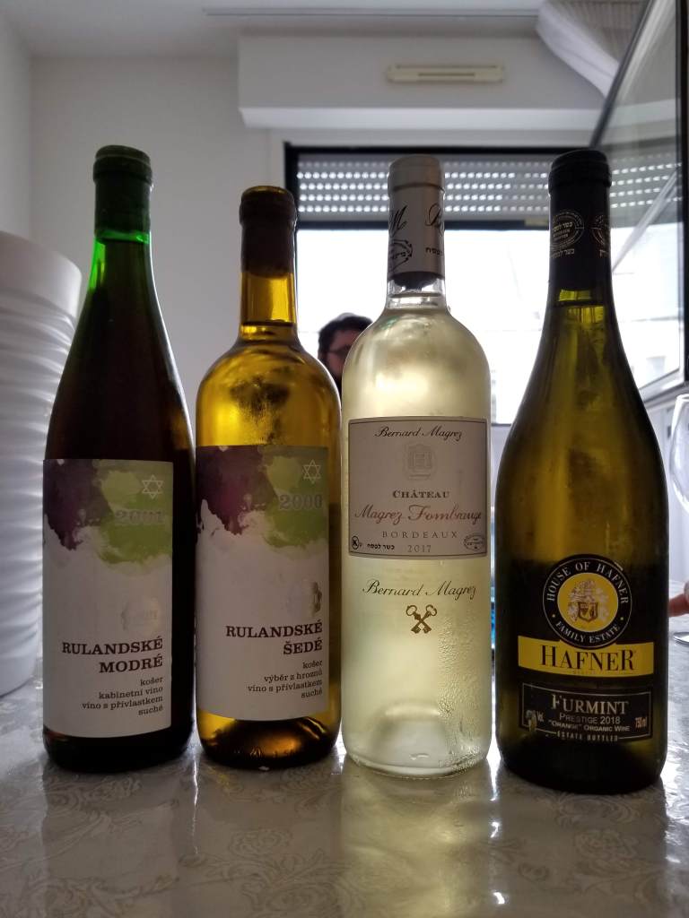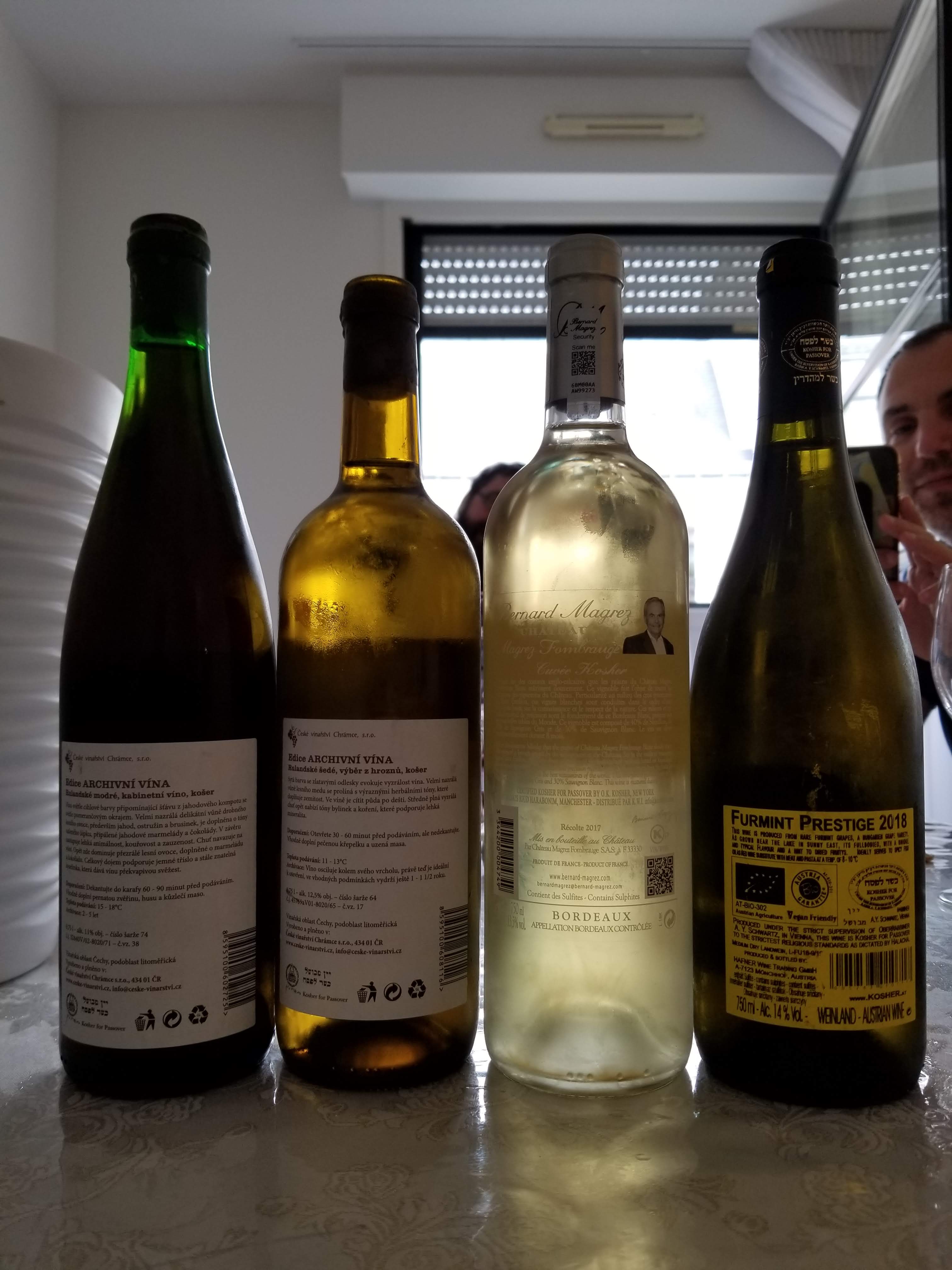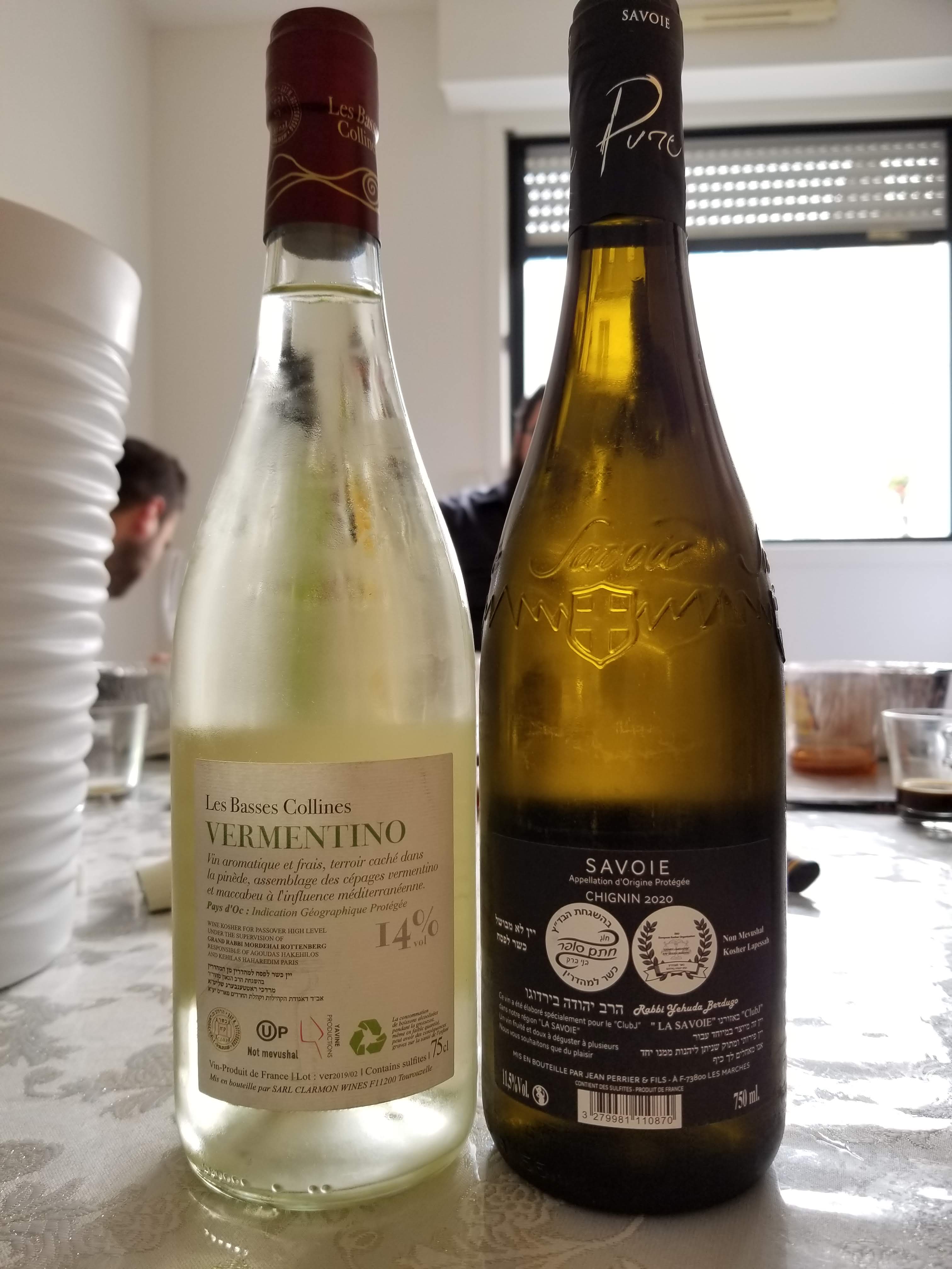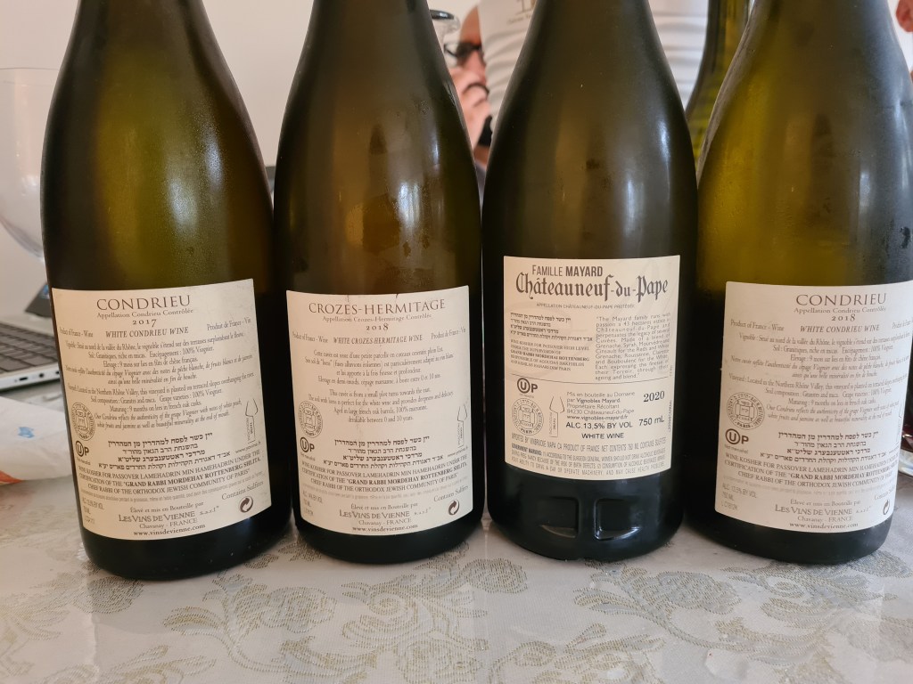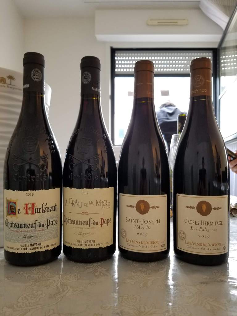 First we had four Rhone wines, two from Cotie-Rotie, one from Cotes du Rhone, and another from Chateauneuf-du-Pape. The two Cotie-Rotie were produced for Mes Vins Cacher and they were quite lovely, though expensive. The Cristia Collection are nice wines made for Israel that Ari was able to also get a few bottles of. This is yet another example of the growing list of French Kosher wines being made solely for Israel’s export. This has been the case for some USA purpose-made French wines as well, but in this case, Israel has taken the lead, at this point.