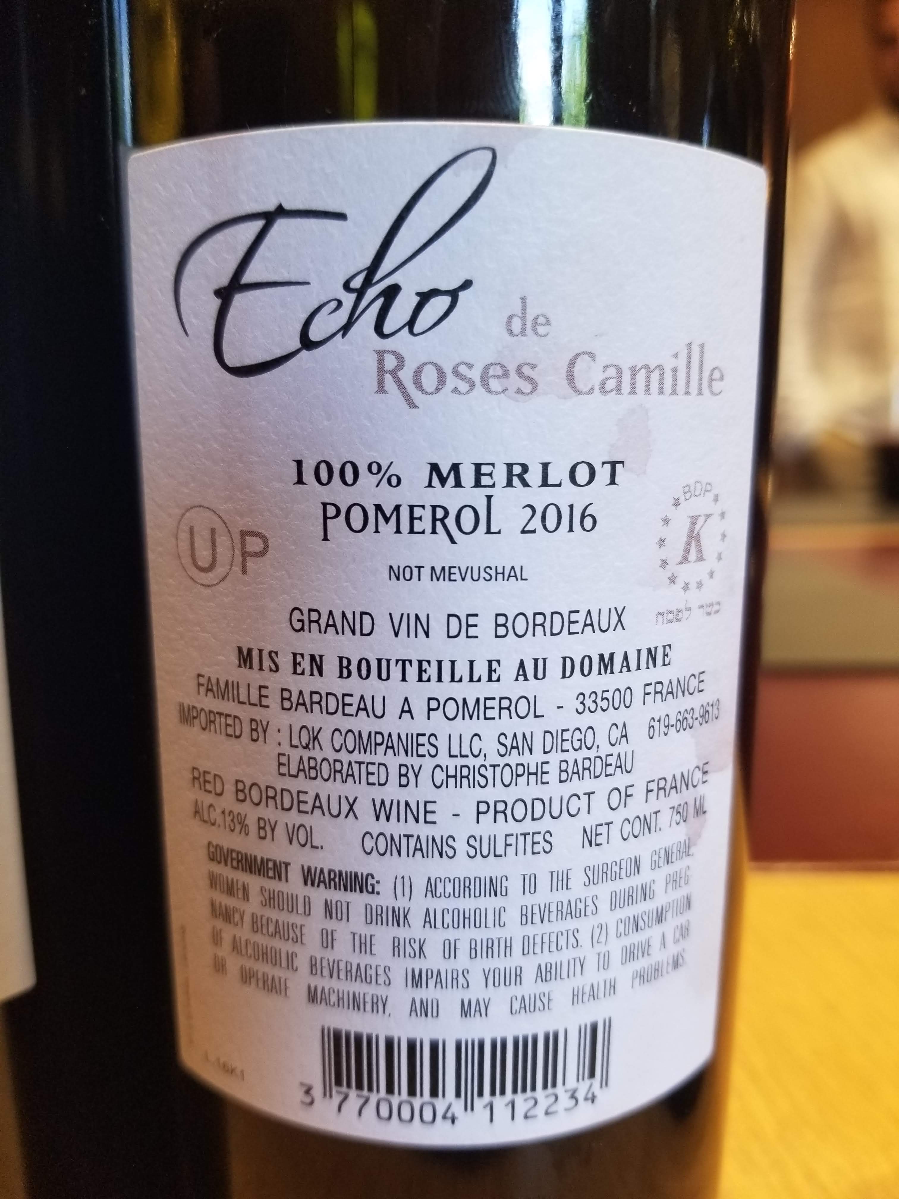 2016 Echo de Rose Camille, Pomerol – Score: 93 (QPR: WINNER)