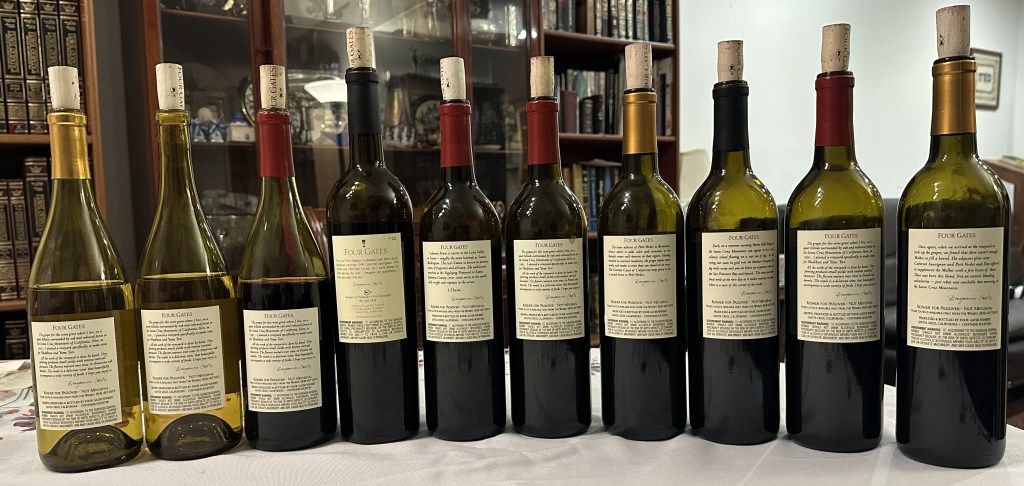 That ends the list of wines I call – not Four Gates wines. I state this because the Four Gates Cabernet Sauvignon, is also not from the Four Gates vineyard, but for all intent and purpose, of what I care about, the quality is as good or better than the Four Gates vineyard and it has proven itself as such for more than a decade!