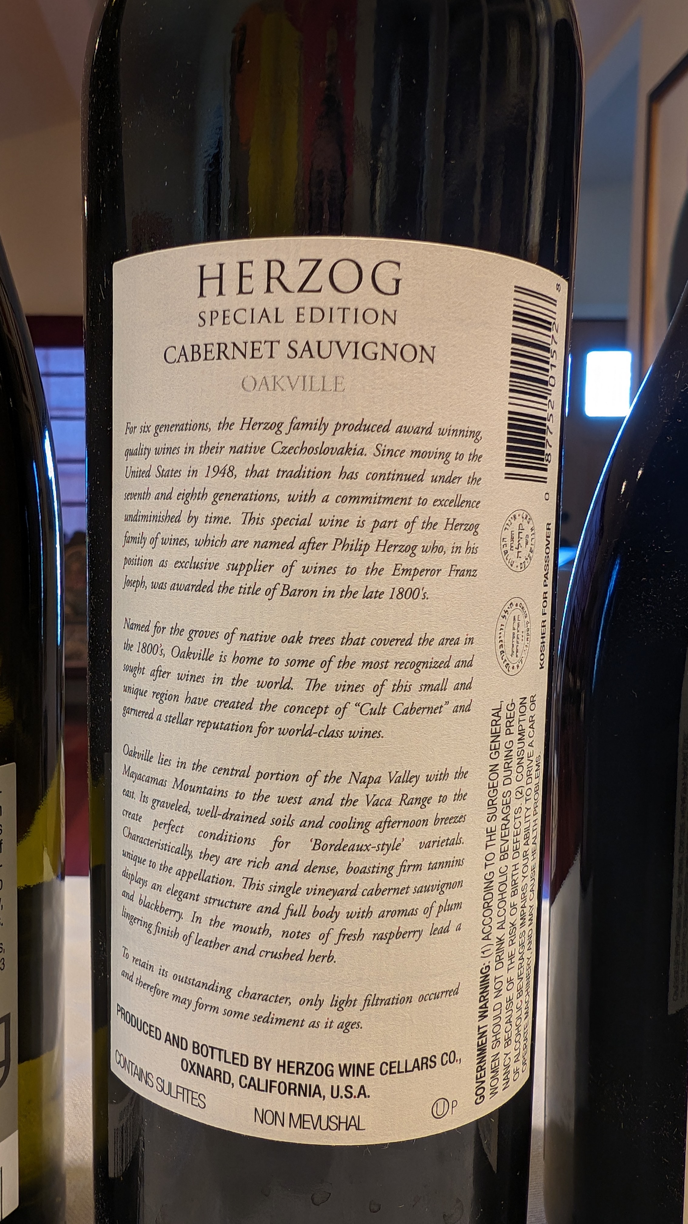 2021 Herzog Cabernet Sauvignon, Oakville, Napa Valley, Special Edition, Oakville, Napa Valley, CA – Score: 92 (QPR: GREAT)