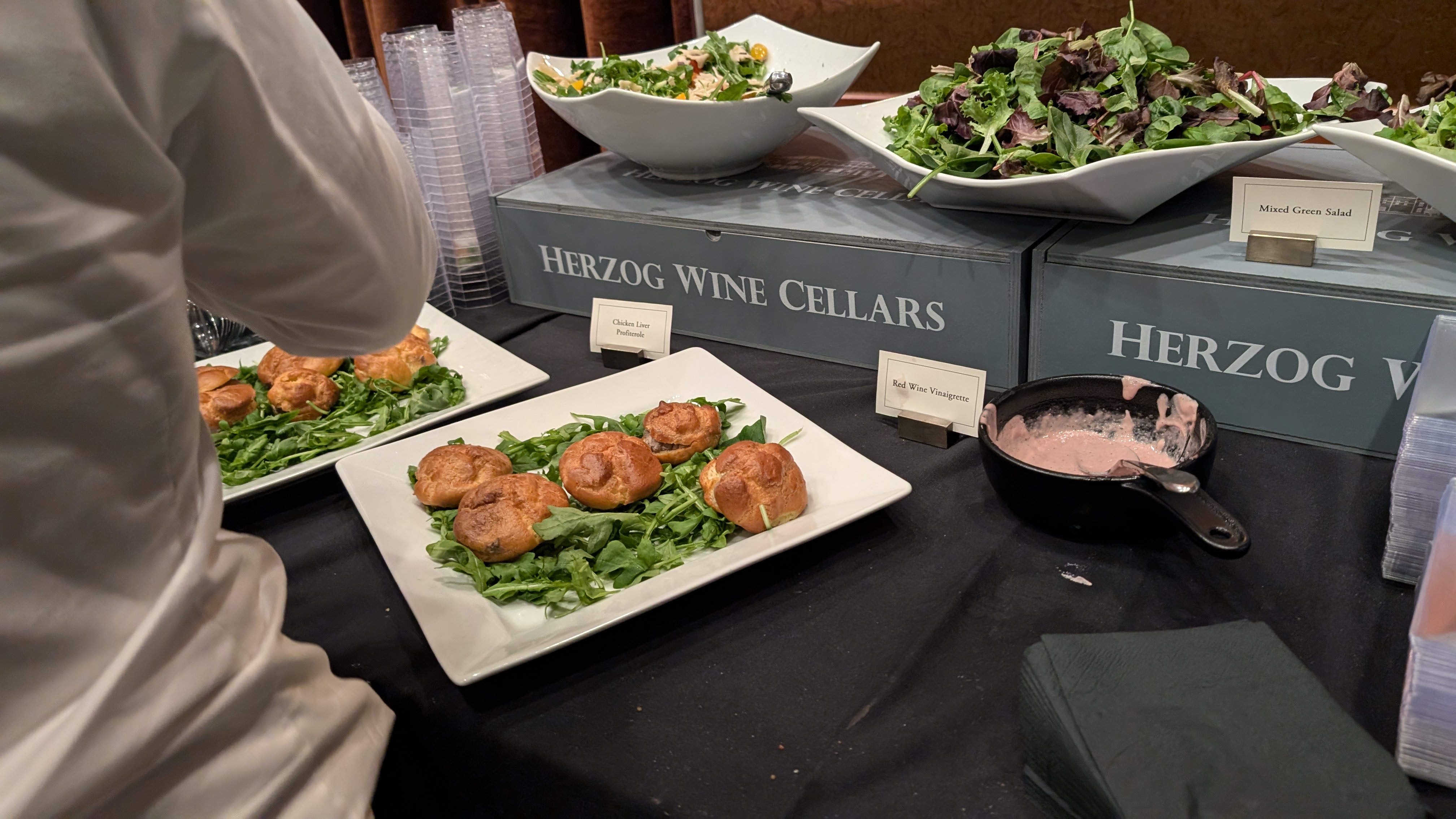 The layout of the event was done with an eye toward Herzog wines and the Tierra Sur Restaurant. As you entered, the wine bar was stacked with many of the top Herzog wines. It also had bubbly wines, some Drappier, Herzog Sparkling wines, and some other stuff that do not matter. They also had sweet wines, Chateau Piada 2016 (not yet ready), some Late Harvest Chardonnay, Forebearers (I missed the vintage), and other sweet wines.