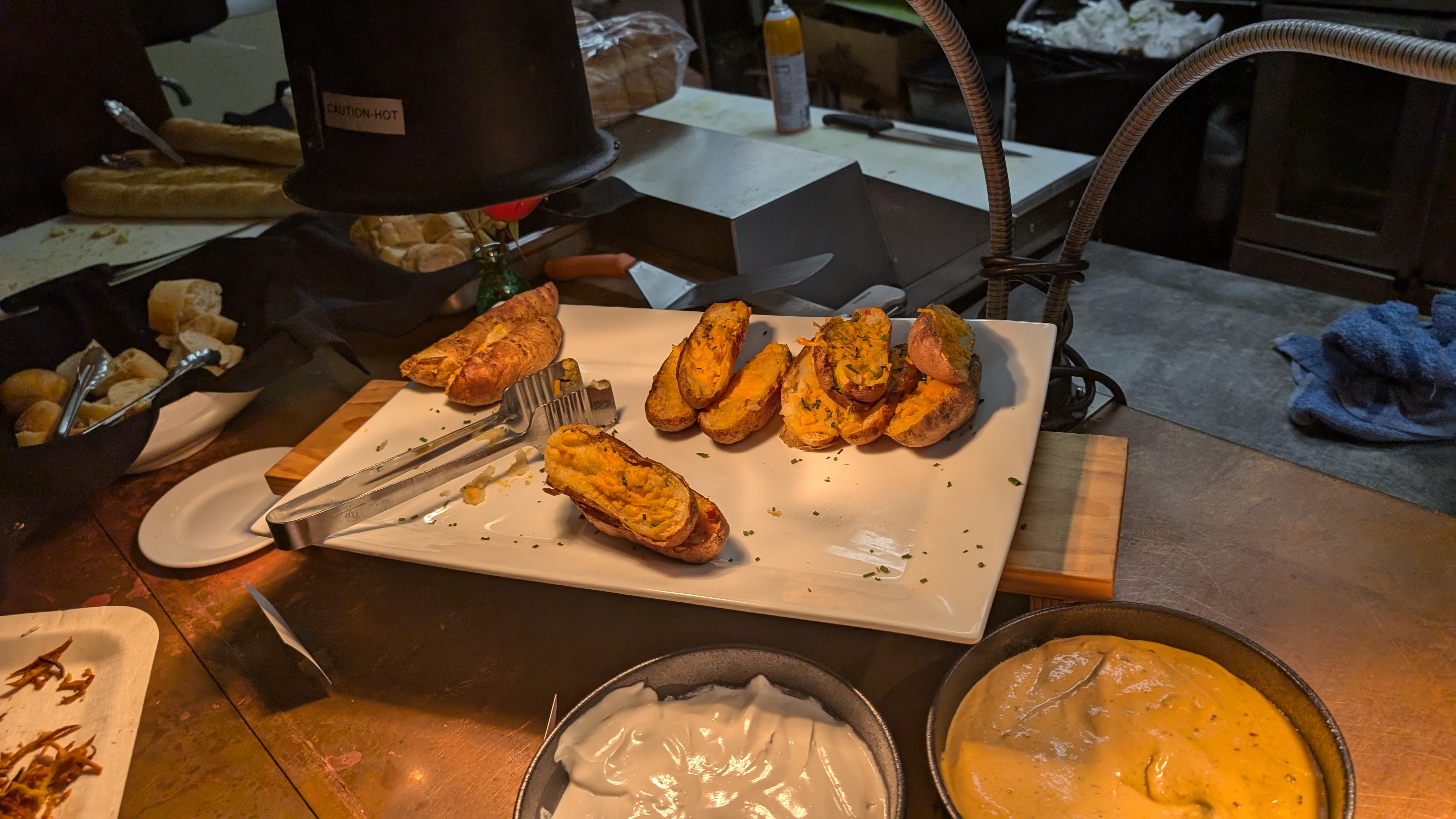 Next to that were the now famous hot honey chicken sliders. I will state, I did not love any of the bread that night, but the chicken was solid as was the slaw on top of it. I do not know if there was hot honey on top or fried in, but either way, I did not taste that – but the chicken was tops (sorry I could not help myself!) After that, there were some loaded potatoes – but that is not my thing.