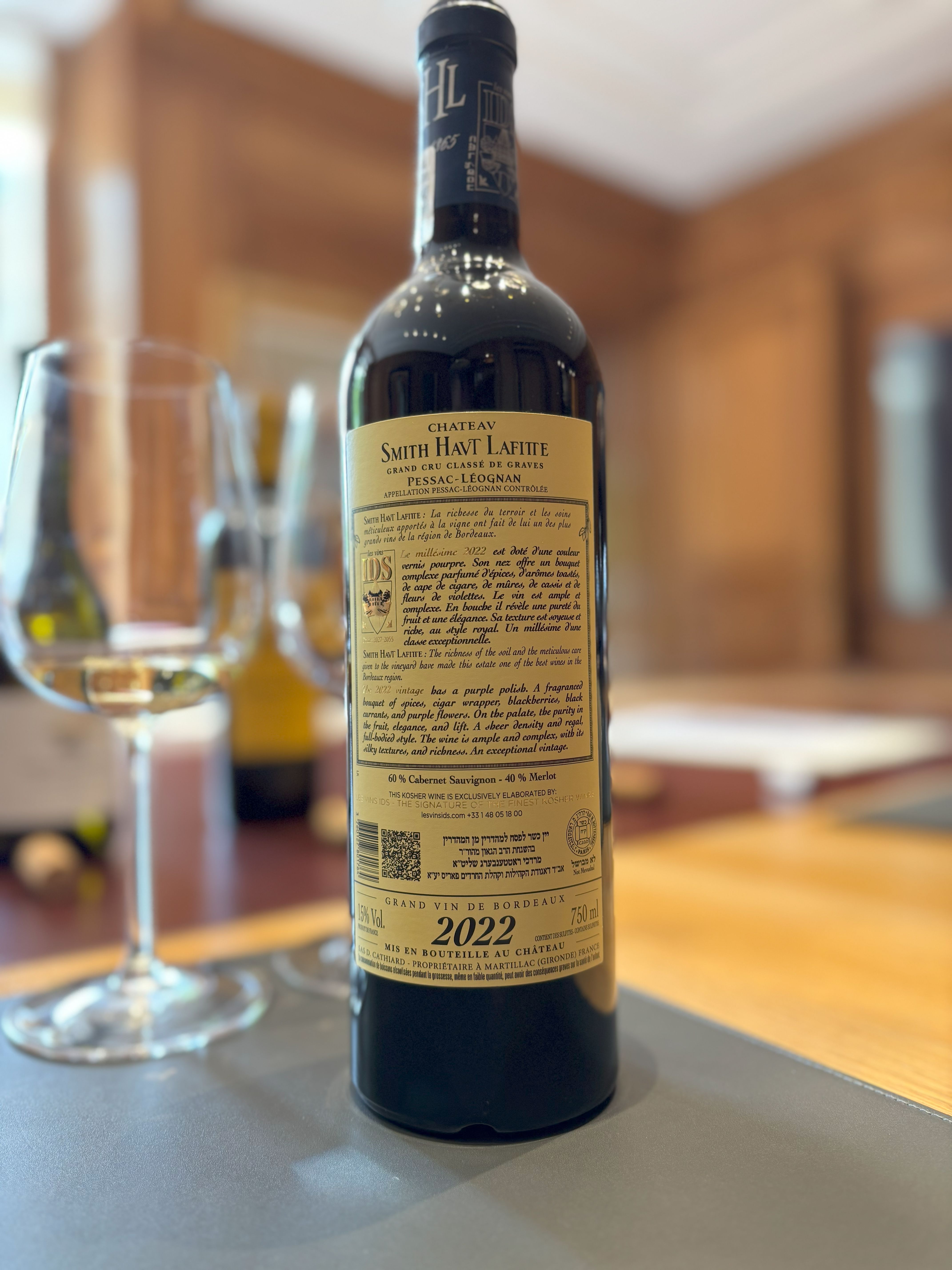 Now, if there was one wine I was asked to share the notes for early, for all the wines we tasted in Paris, on this trip, it would have to be the 2022 Chateau Smith Haut Lafitte. I must admit that when tasting the Lafon Rochet, we knew, essentially, what we were going to get: a crazy good wine for the price, with loads of potential. However, when the 2022 Chateau Smith Haut Lafitte was poured, it reminded me of when I tasted the 2019 Chateau Smith Haut Lafitte, blind, with a bunch of other people. The room went absolutely silent; you could hear yourself thinking. It was intense. This was a wine that showed everything to you at once, and yet did it in elegance and control. Notwithstanding, it could have used a dollop more control, but in the end, it may well be the best Kosher wine I have ever tasted.
