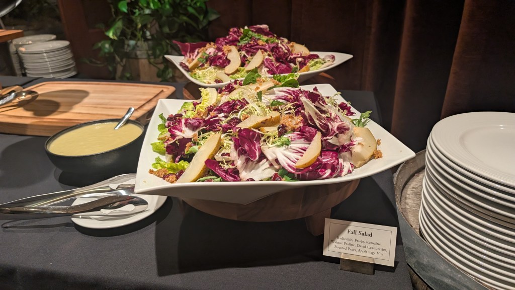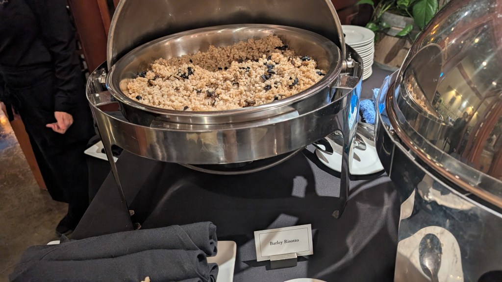 The table on the inside had a lovely fall salad that I enjoyed with the Bison. The Barley Risotto was nice, but it was more of a Pilaf than a risotto. Finally, the prime rib and the Veal were a bit too cooked for my tastes, more like pot roast than a chunk of beef, but all the food was solid.