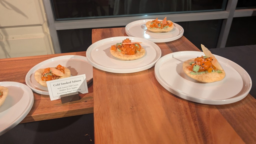 The following table had three mevushal wines. The 2023 Herzog Cabernet Sauvignon, Lake County, Special Reserve, the 2023 Herzog Cabernet Sauvignon, Alexander Valley, Special Reserve, and the 2023 Herzog Cabernet Sauvignon, Napa Valley. The dish on that table was the Beef Cheek Nugget with Cherry demi-glace. The dish was succulent and quite enjoyable. The wines were a good pairing, and as I stated above, far more accessible than the non-Mevushal Lake County Cabernet Sauvignon. They were more supple, though they had the tannin to go for a bit.