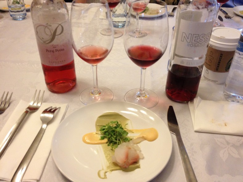 Hirame- Yuzu Avocado Puree, Siracha and 2012 Capcanes Rose:Rosat and 2011 Elvi Rose:Rosado